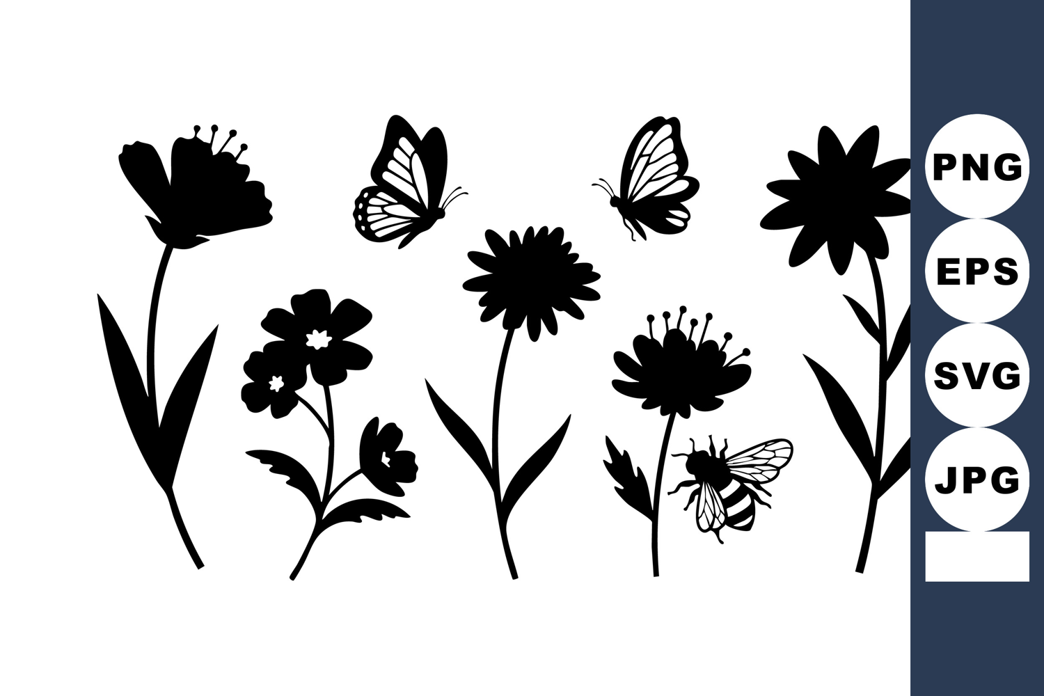 Similar Design Products to Wildflower Silhouettes Vector with Butterflies and Bee