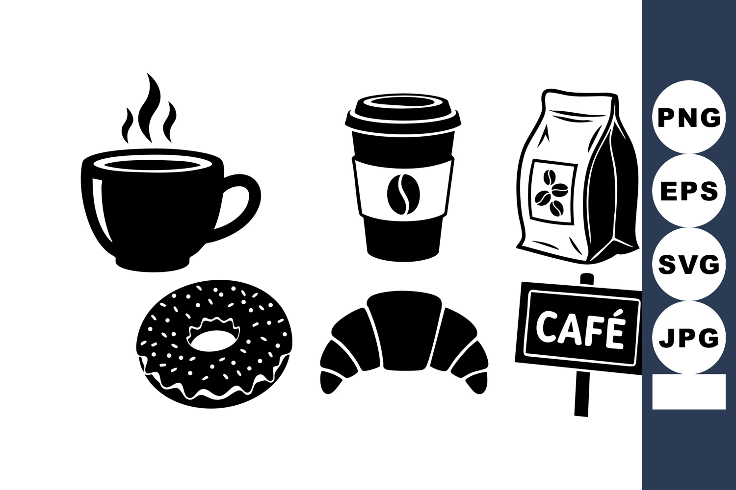 Coffee Cup Donut Croissant Cafe Bag Icons Vector example image 1