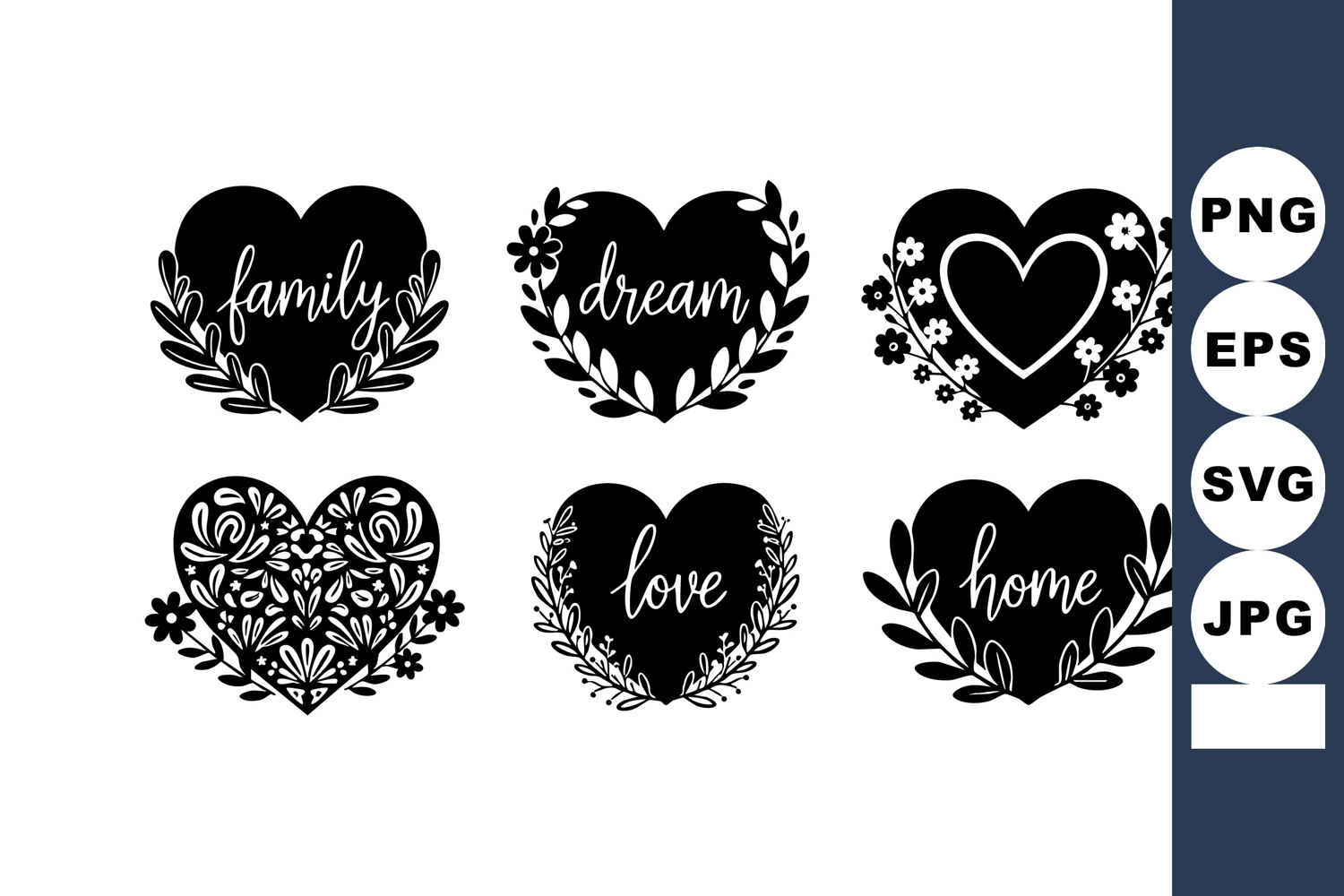 Floral Decoration Vector Decoration Vector Illustration Heart Shapes Family Family Dream Love Dream Love Home Love Home Words Home Words Floral Words Floral Decoration Black Heart Shapes Heart Shapes Decorated