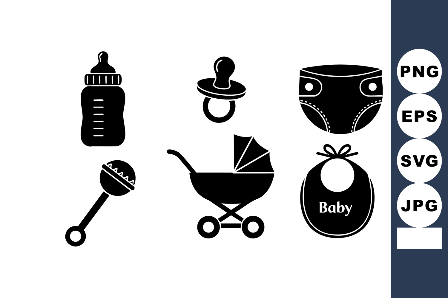 Newborn Baby Set Baby Feeding Bottle Feeding Bottle Pacifier Baby Pacifier Diaper Pacifier Diaper Bib Diaper Bib Stroller Bib Stroller Rattle Black Baby Icons Baby Feeding Vector Infant Baby Icons