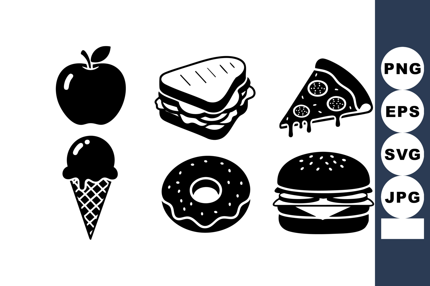 Black Food Icons Apple Sandwich Pizza Vector example image 1