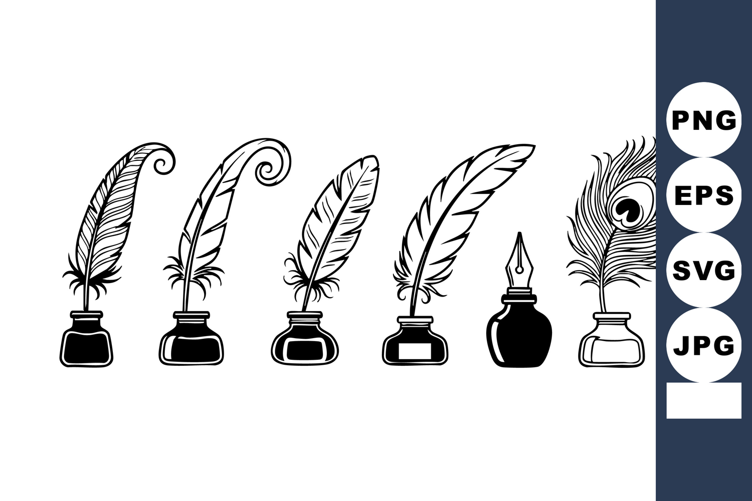 Similar Design Products to Vintage Feather Pens Ink Bottles Vector Set