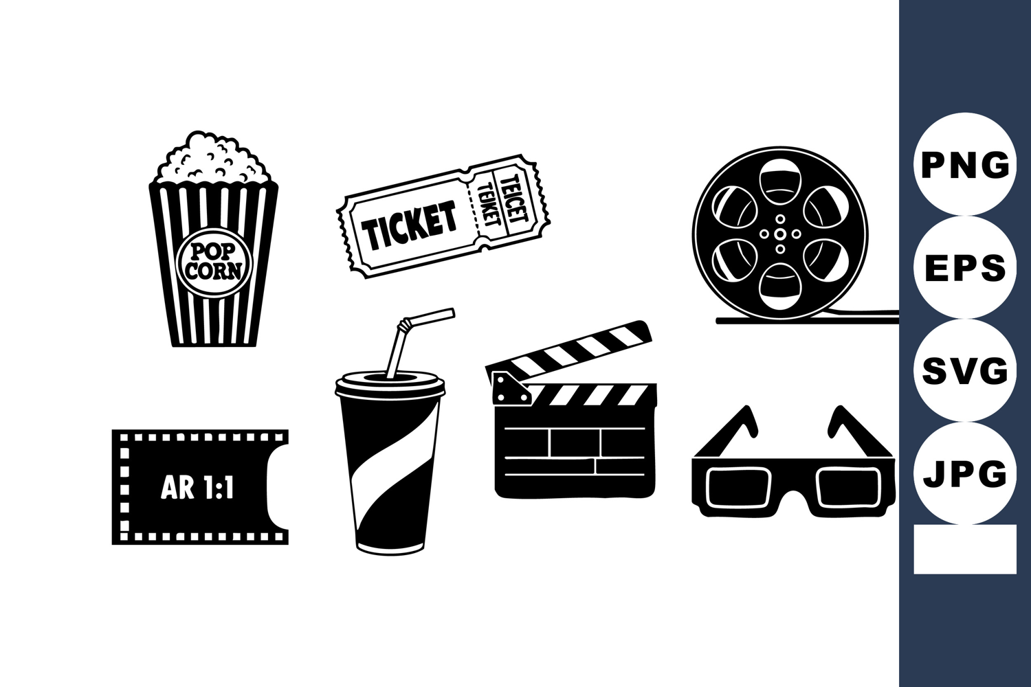 Cinema Movie Icons Popcorn Ticket Drink Reel example image 1