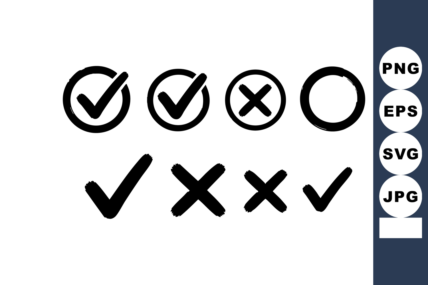 Black Hand Drawn Check Marks Crosses Icons example image 1