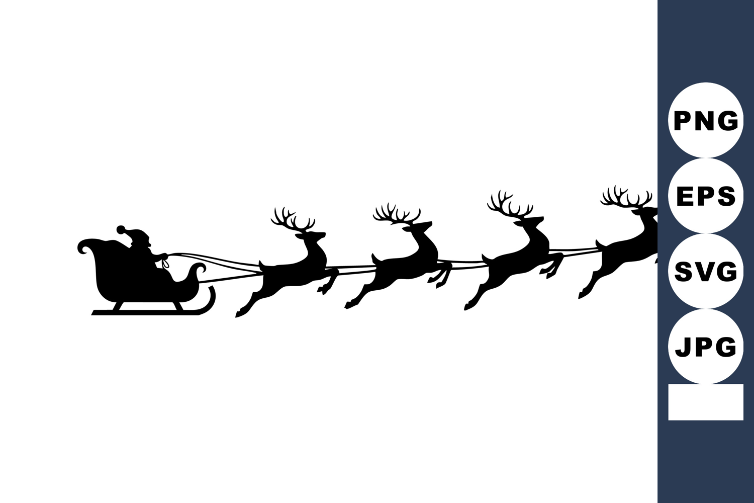 Santa Claus Sleigh With Four Reindeer Silhouette Vector example image 1