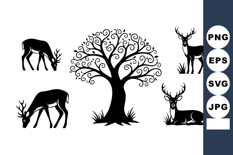 Similar Design Products to Silhouette Deer Tree Wildlife Forest Animals Vector