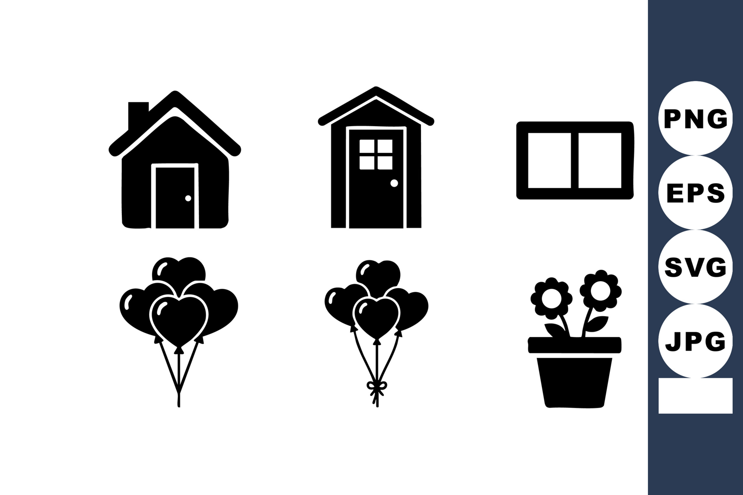 House Door Window Balloon Flower Pot Icons example image 1