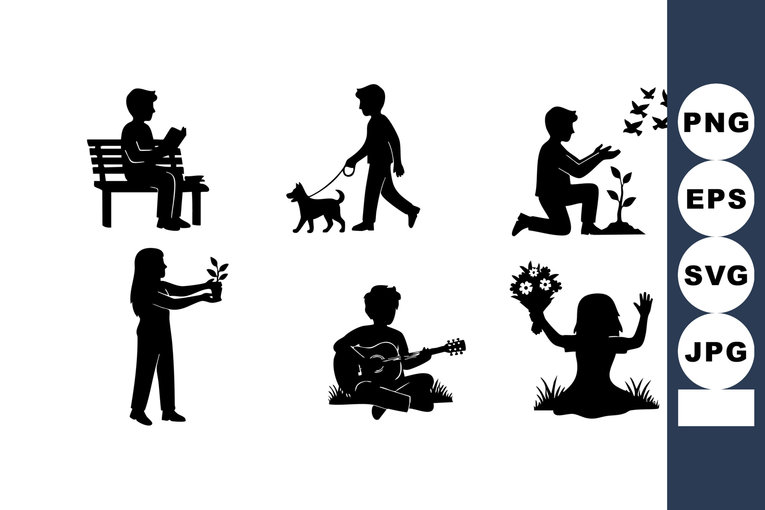 Similar Design Products to Silhouettes People Dog Guitar Gardening Flowers Vector