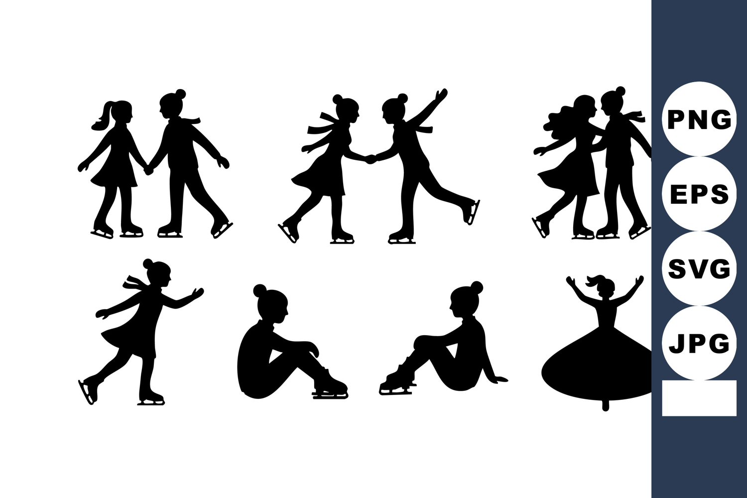 Figure Skating Vector Silhouette Skating Figures Skating Couple Poses Woman Skating Silhouette Sitting Woman Skating Spinning Woman Skating Dynamic Skating Movement Elegant Skating Figures Graceful Skating Poses Ice Skating Sport