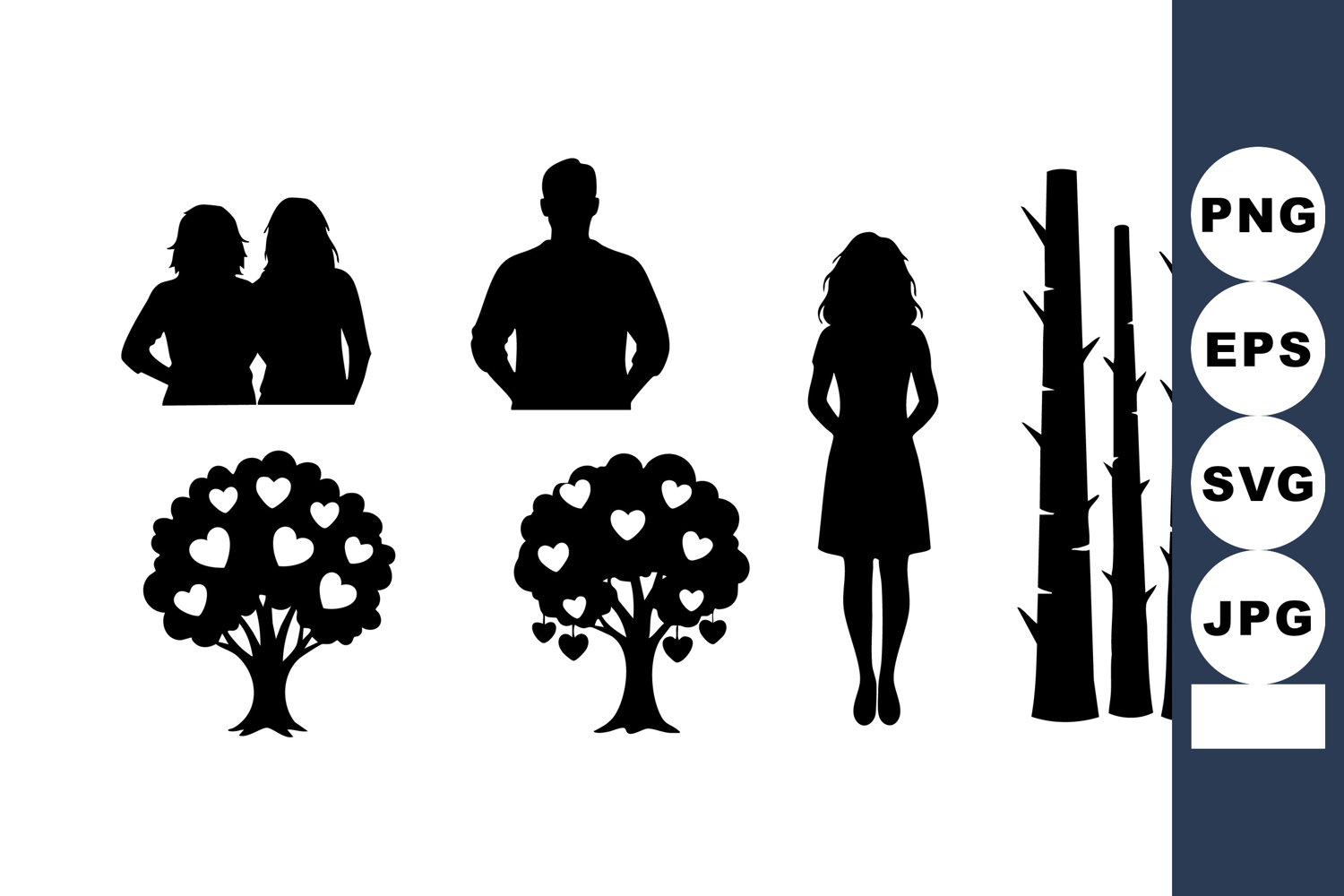Isolated White Background Black Vector Illustration Calm Mood Illustration Peaceful Nature Scene Silhouette People Trees People With Bamboo Heart Shaped Trees Vector Design Isolated Silhouette Couple Tree Natural Bamboo Stalk