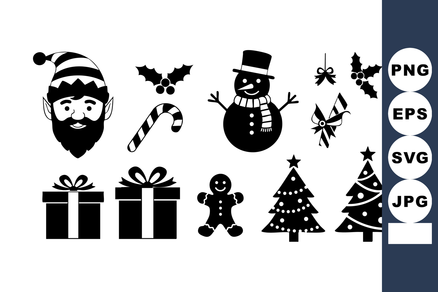 Christmas Holiday Icons Santa Snowman Tree Gifts example image 1