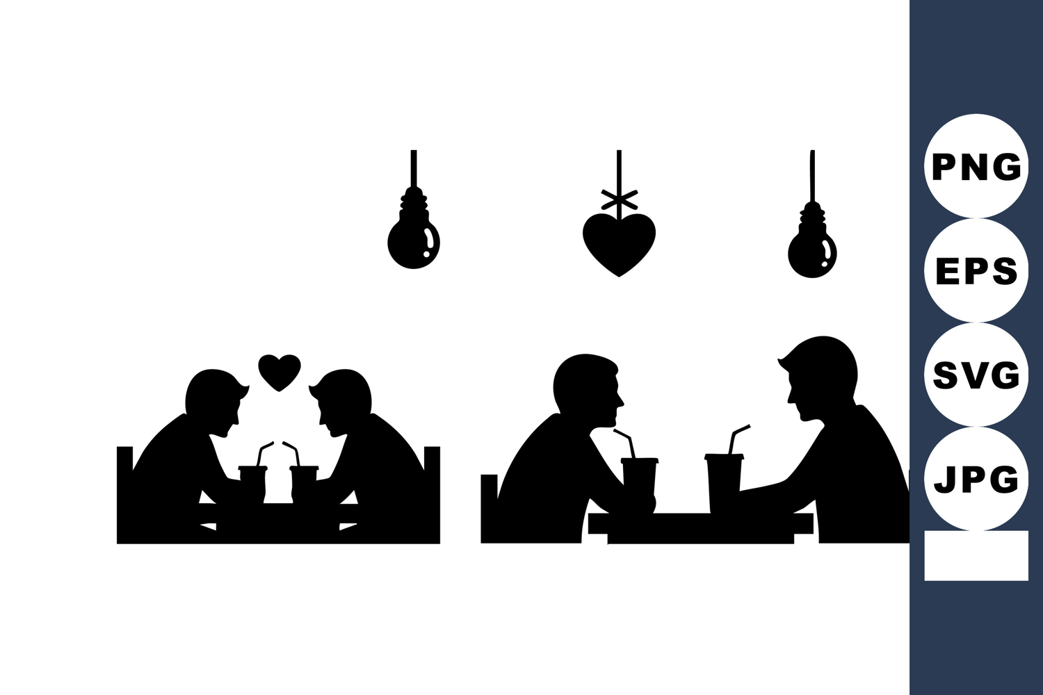 Silhouette Couple Drinking Romantic Cafe Scene example image 1