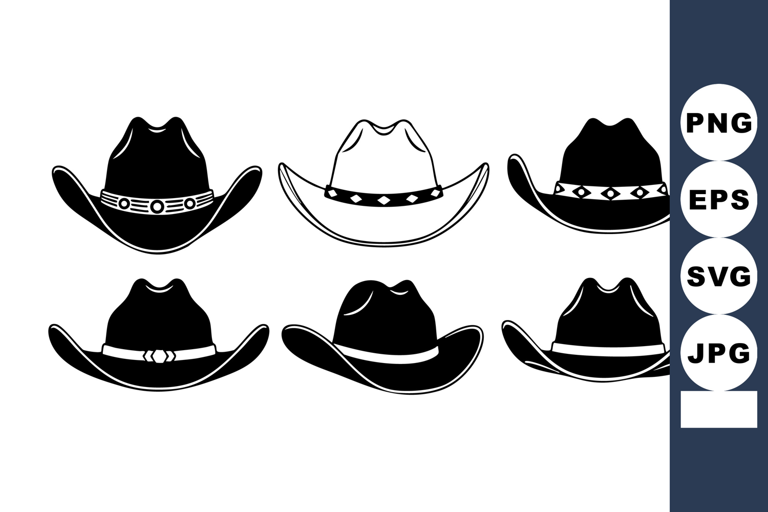 Six Cowboy Hats Vector Illustration Black White example image 1