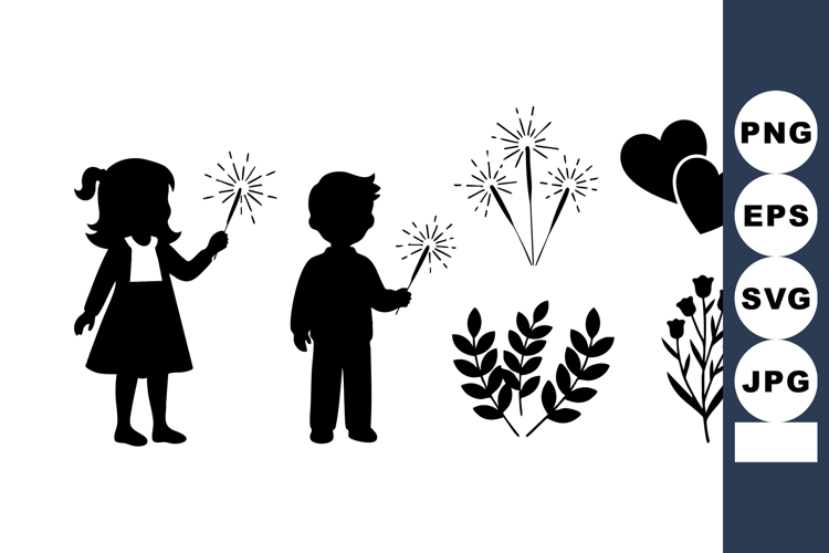 Children Holding Sparklers Hearts Floral Silhouette Vector example image 1