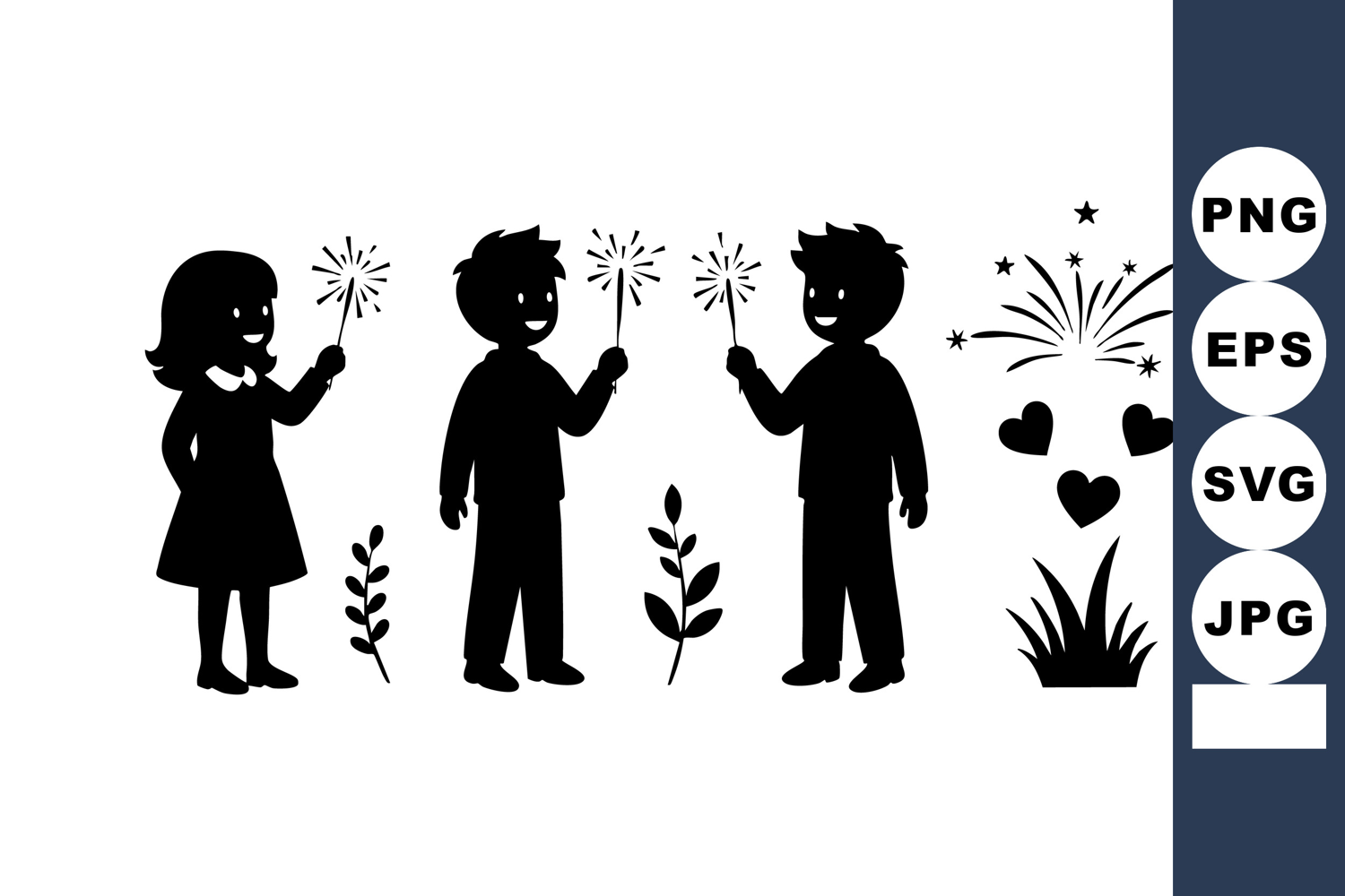 Children Holding Sparklers Hearts Fireworks Silhouette example image 1