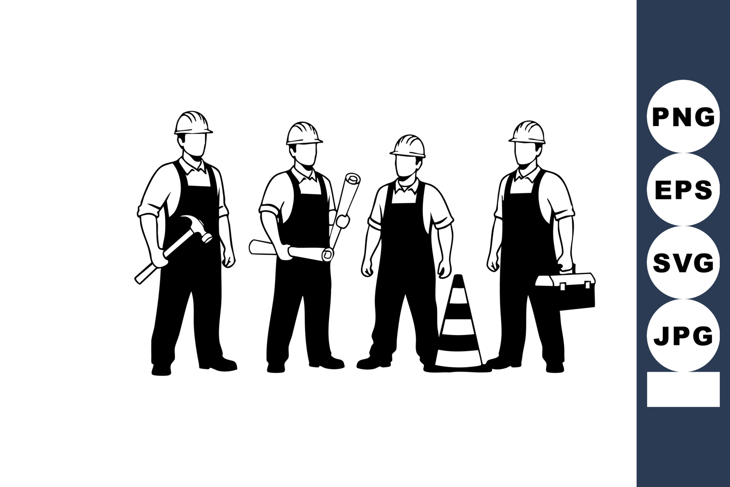 Construction Workers Tools Safety Cone Silhouette Illustrati example image 1