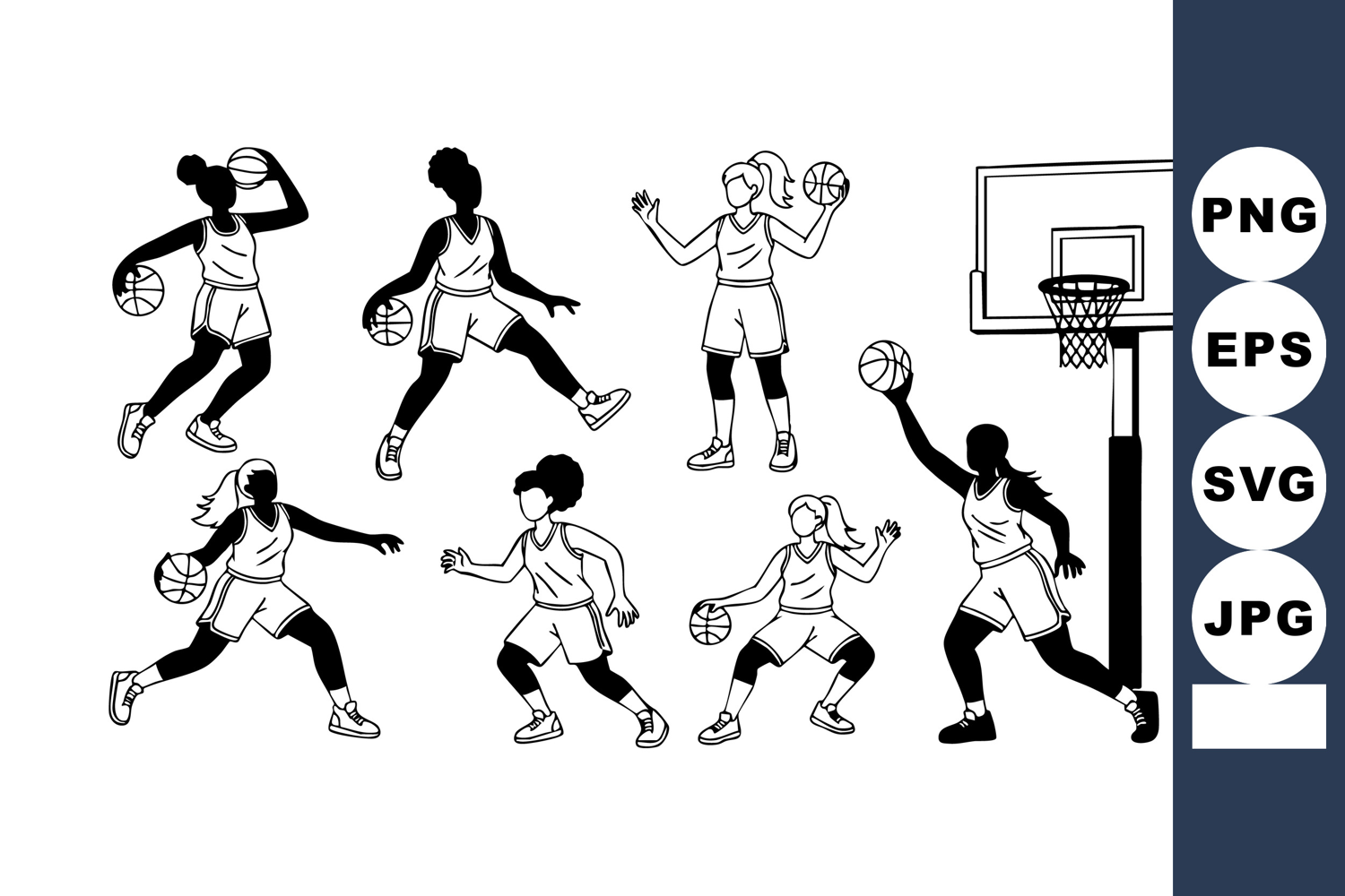 Basketball Hoop Silhouette Female Basketball Players Basketball Players Dribbling Players Shooting Basketball Basketball Players Passing Players Basketball Game Female Basketball Athletes Basketball Player Motion Basketball Team Players Players Dribbling Ball