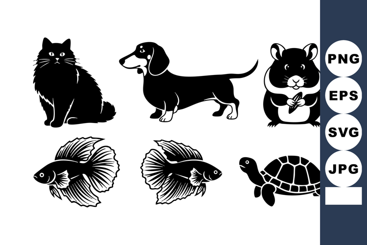 Black Silhouette Pets Cat Dog Hamster Fish Turtle Vector Ill example image 1