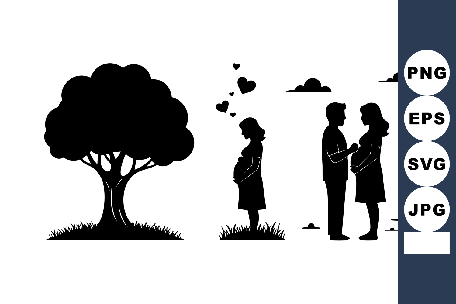 Silhouette Tree Pregnant Woman Couple Love Scene example image 1