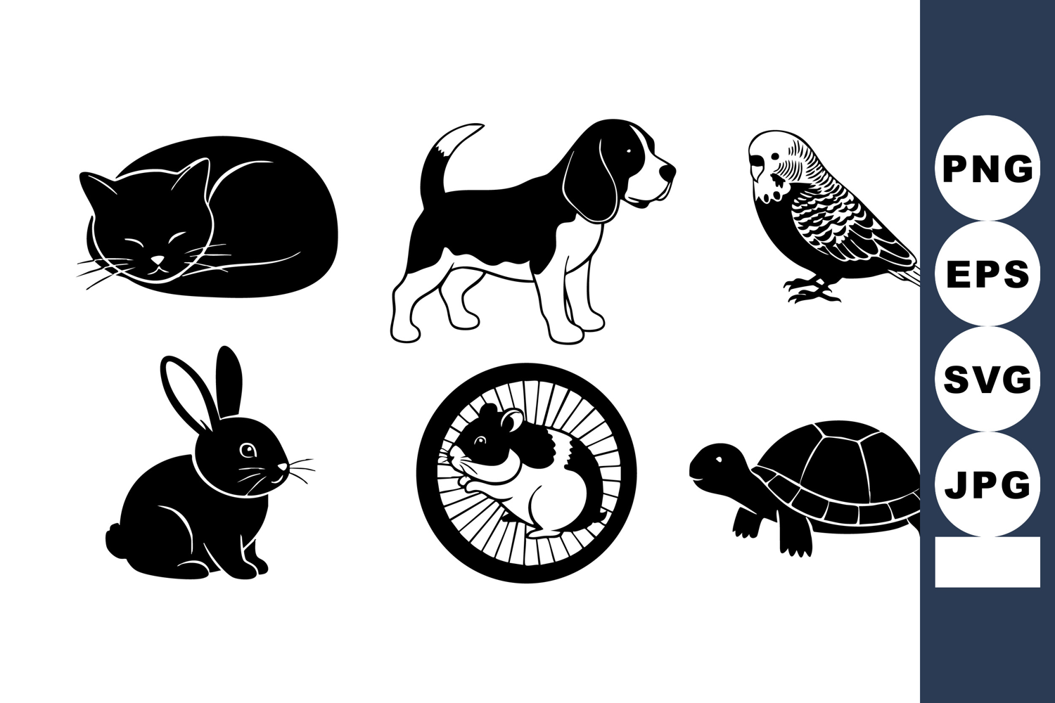 Animal Vector Illustration Black Silhouette Cat Black Silhouette Bird Black Silhouette Hamster Black Silhouette Dog Black Silhouette Rabbit Black Silhouette Turtle Pet Animal Vector Animal Pet Silhouette Common Pet Animals