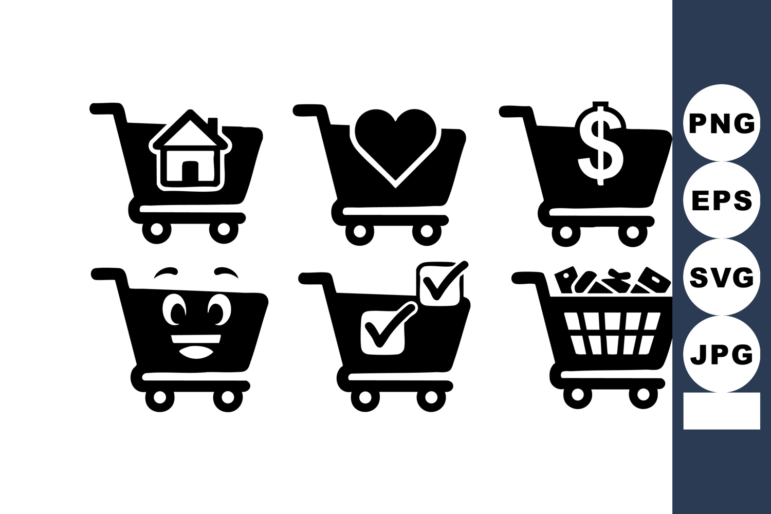 Shopping Cart Icons Home Heart Dollar Smile Groceries example image 1