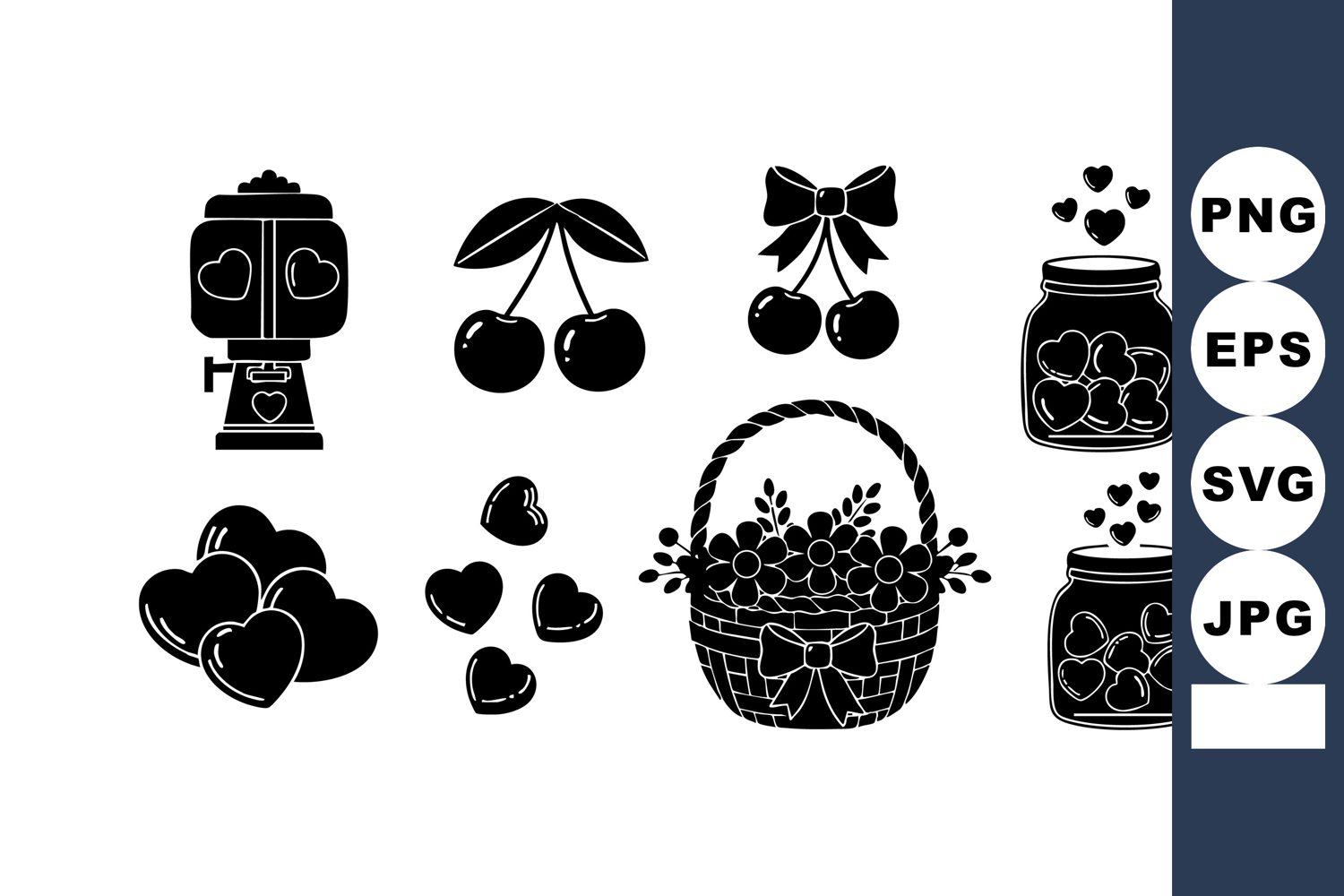 Cherry Icons Set Basket Jar Hearts Love