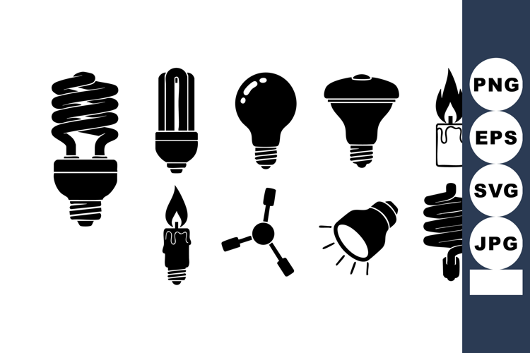 Black Silhouette Light Bulbs Candle Lamp Icons example image 1