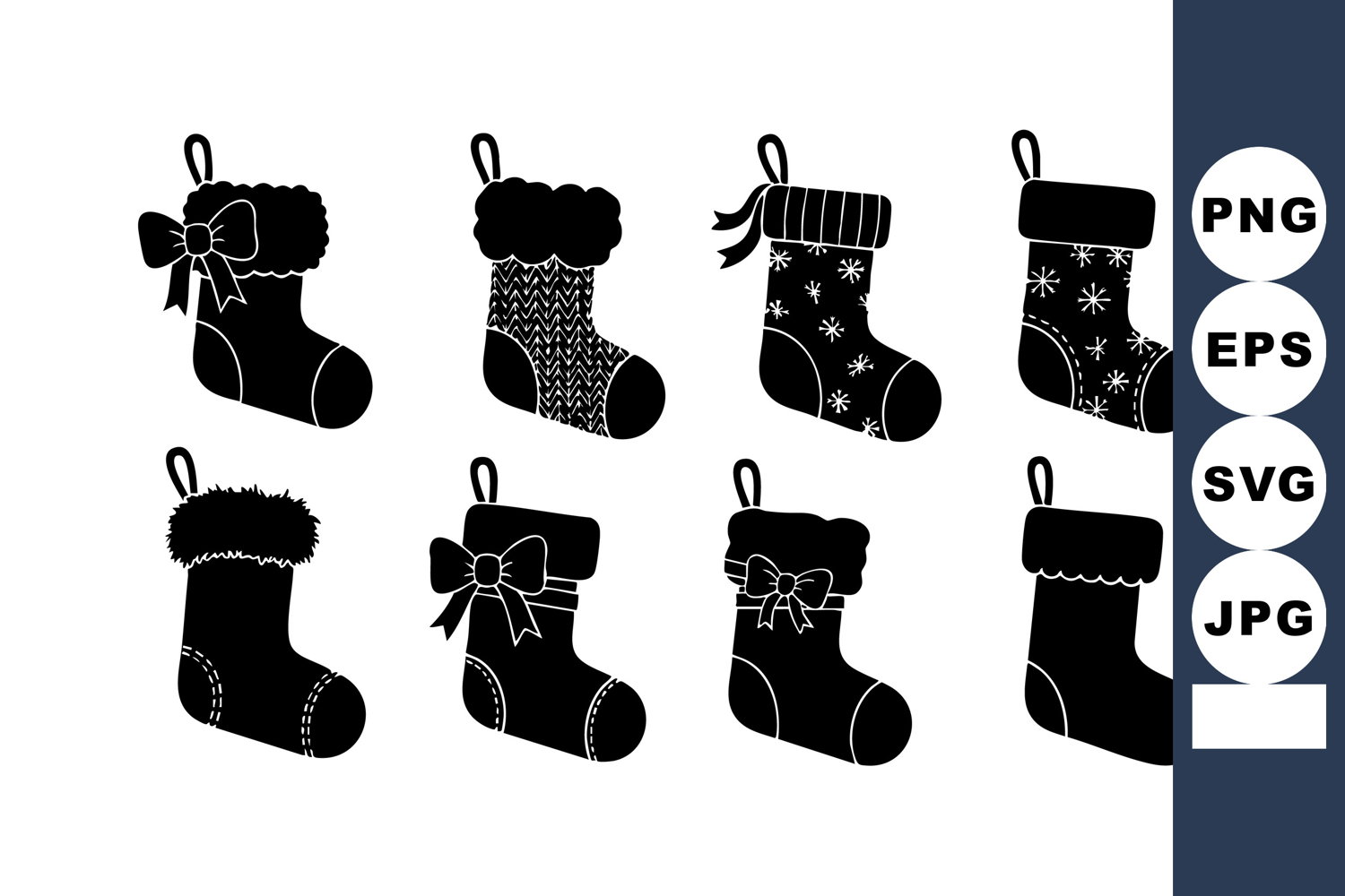 Festive Holiday Decorations Christmas Stockings With Stockings With Fur Holiday Decorations Vector Black Silhouette Stockings Stockings Hanging In Snowflakes On Stockings Cozy Winter Holiday Christmas Gift Stockings Winter Holiday Stockings