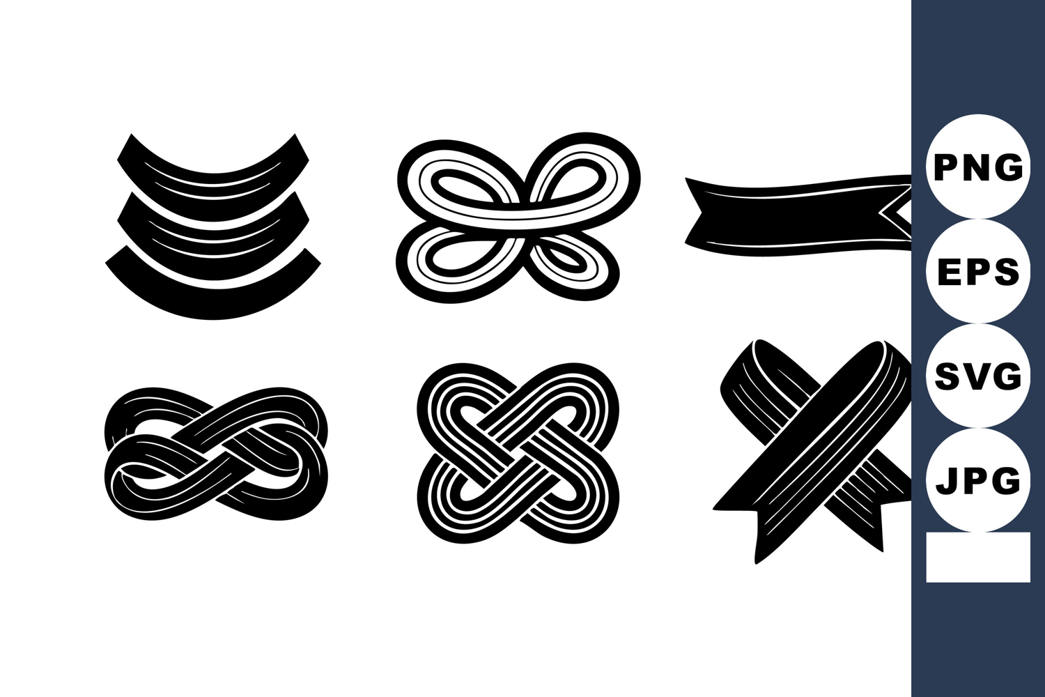 Set Six Black Ribbon Vector Knot Loop Shapes example image 1