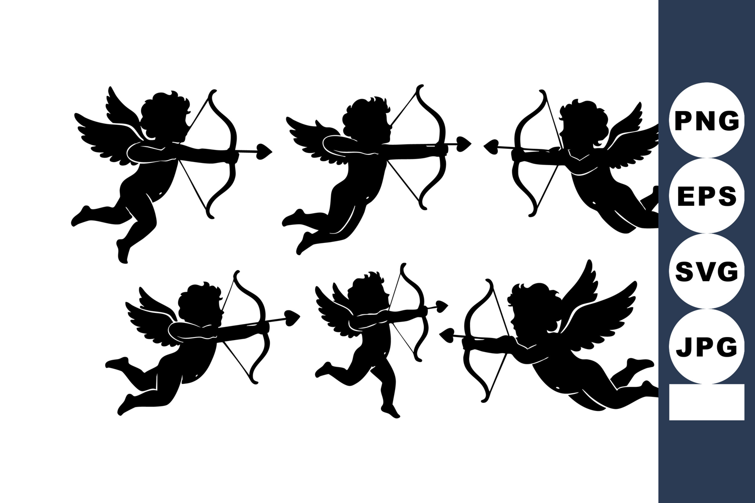 Cupid Silhouette Vector Set Wings Bow Arrow example image 1