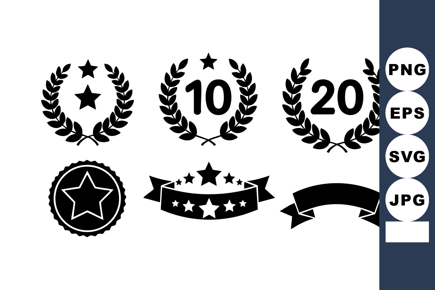 Vector Illustration Set Twenty Years Anniversary Ten Years Anniversary Simple Black Style Laurel Wreath Star Star Award Badge Award Badge Anniversary Classic Design Achievement Achievement Celebration Mood Laurel Wreath Badge