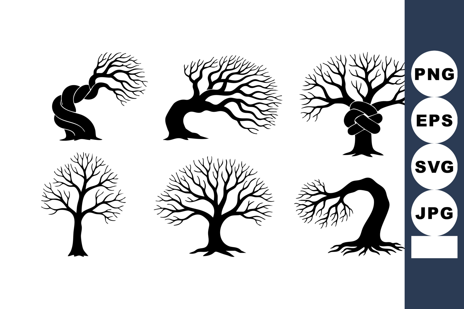 Twisted Bare Trees Silhouette Vector Set Nature example image 1