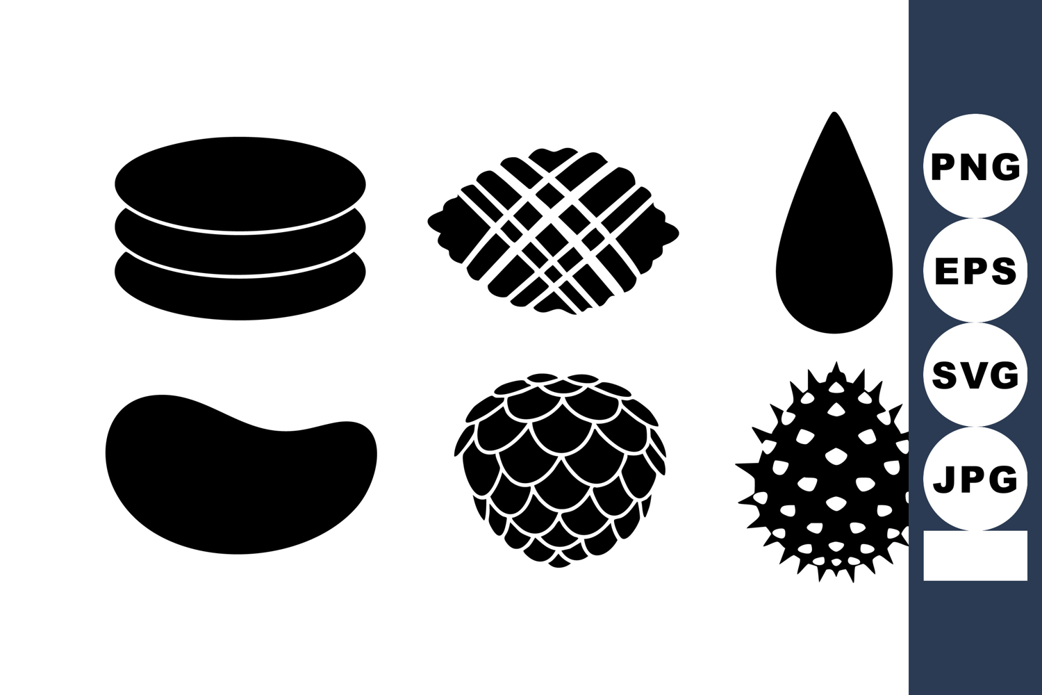 Six Black Silhouette Seed Shapes Collection Vector example image 1