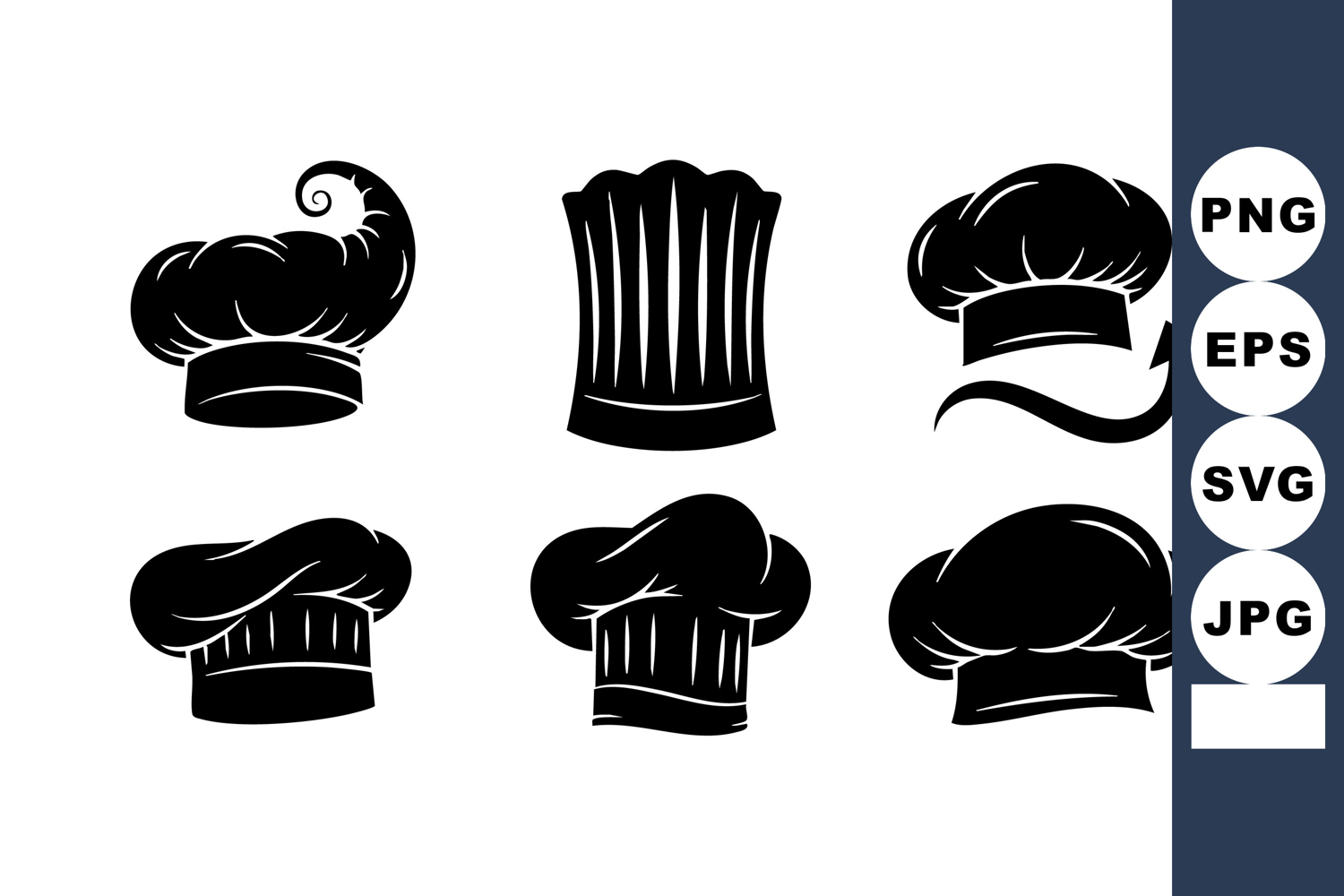 Vector Illustration Design Chef Hats Collection Black Silhouette Chef Kitchen Uniform Accessories Classic Modern Hat Professional Culinary Mood Cooking Hat Styles Chefwear Headwear Design Restaurant Chef Style Kitchenwear Chef Uniform