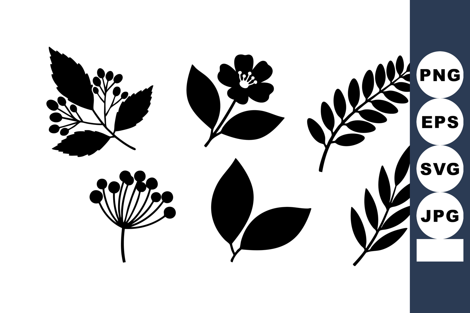 Black Silhouette Leaves And Floral Elements Vector Design example image 1