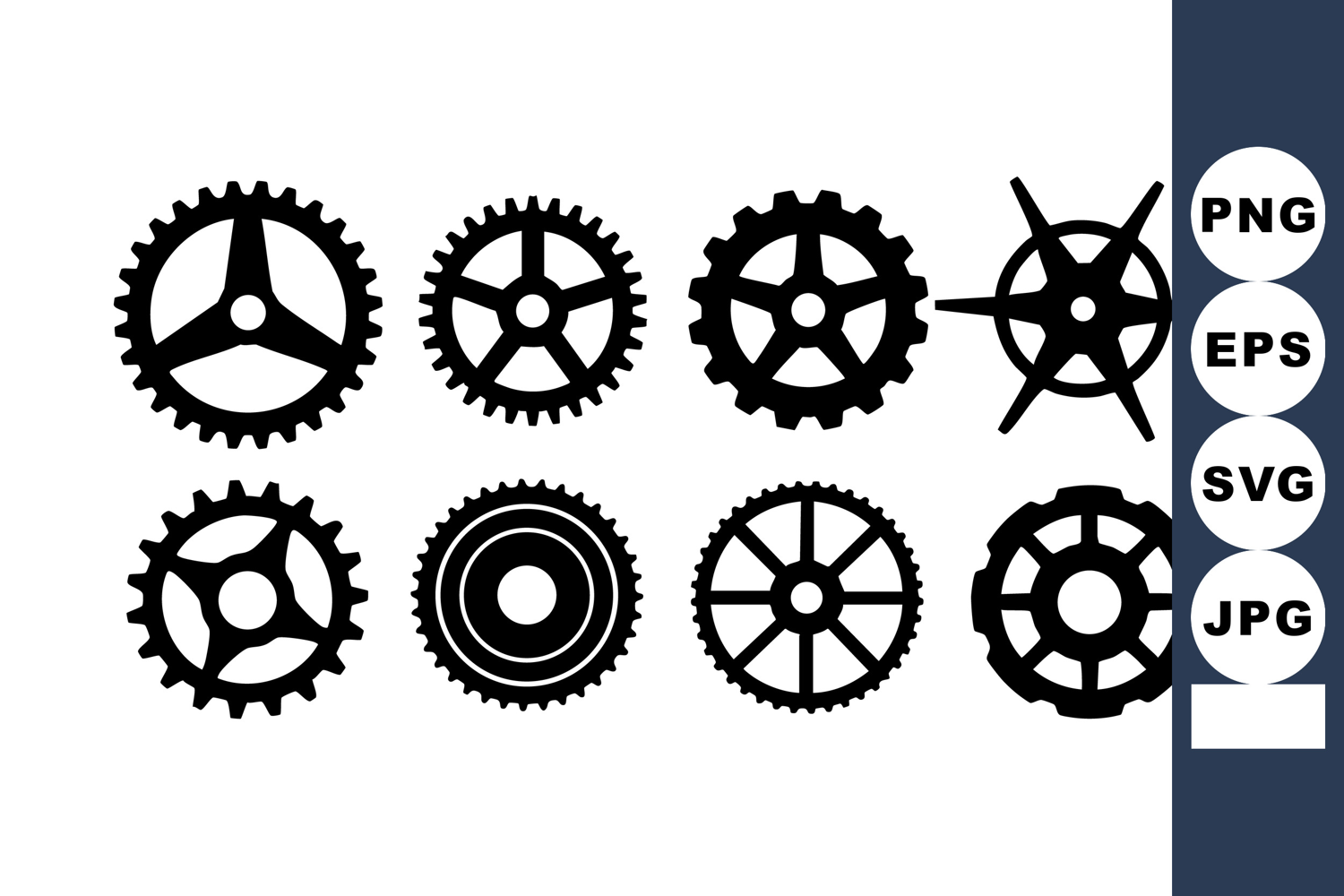 Similar Design Products to Set of Eight Black Gear Wheel Silhouettes Vector
