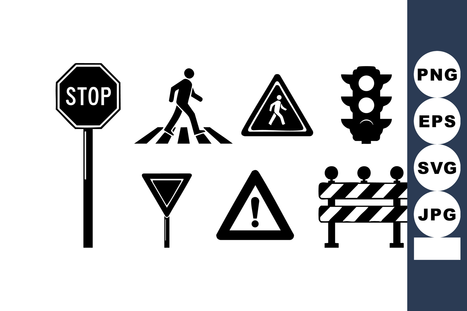 Stop Sign Icon Warning Sign Vector Black Silhouette Icons Traffic Signs Pedestrian Pedestrian Crossing Symbols Traffic Lights Icon Yield Sign Symbol Barrier Icon Set Road Safety Symbols Walk Sign Vector