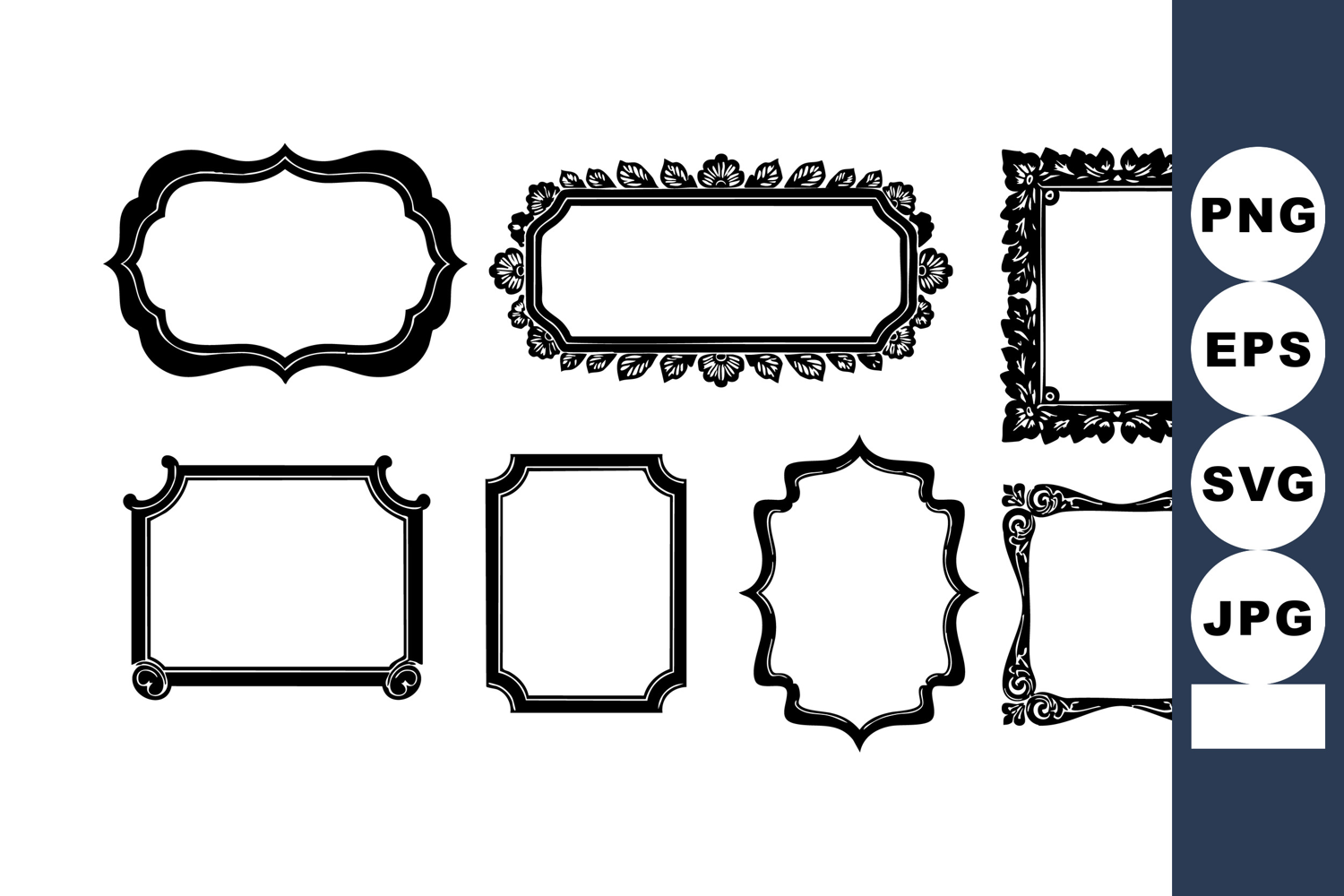 This vector file shows seven vintage ornamental frames with detailed decorative borders in classic style black silhouettes perfect for invitations and design projects elegant