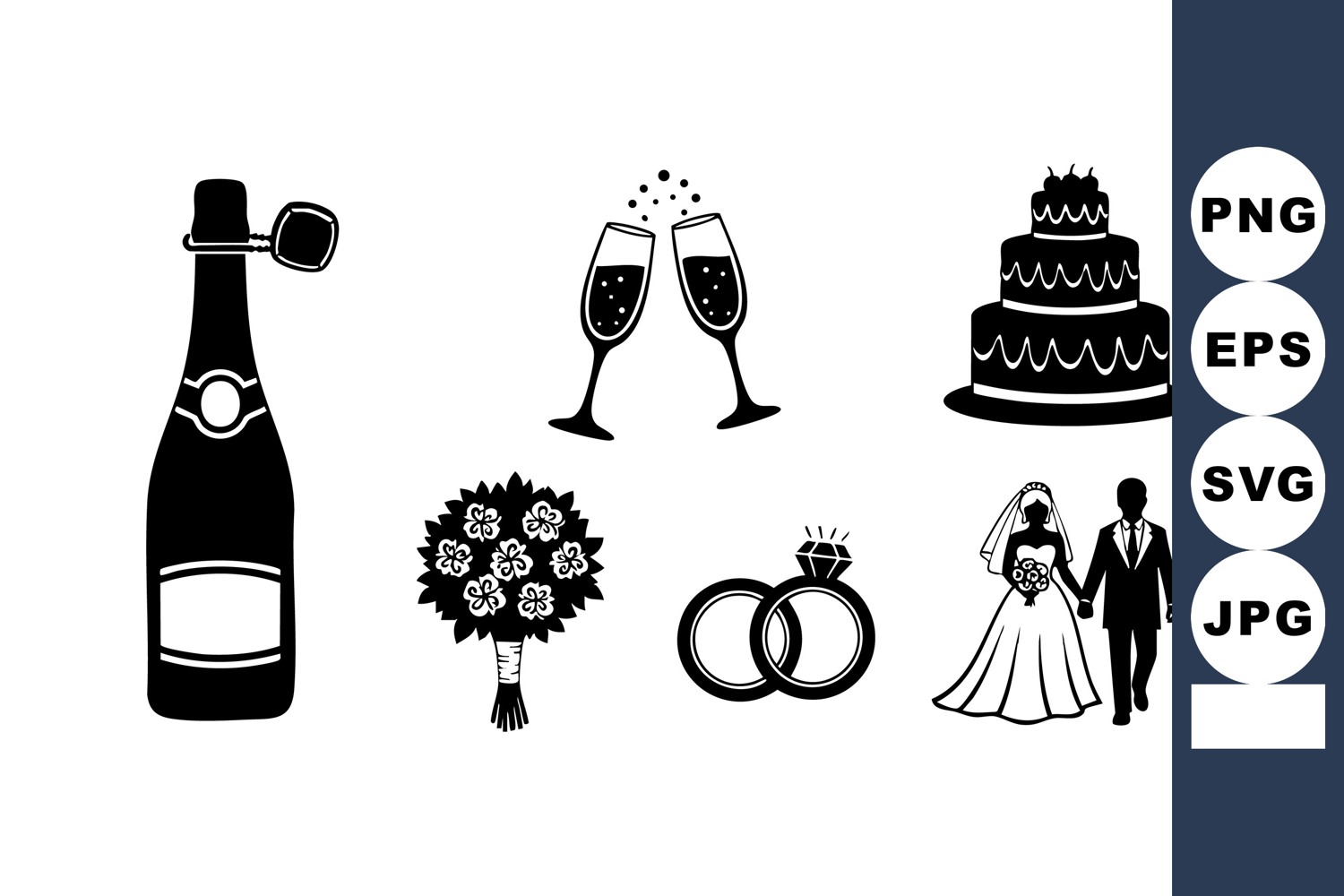 Wedding Celebration Icons Champagne Cake Bouquet example image 1