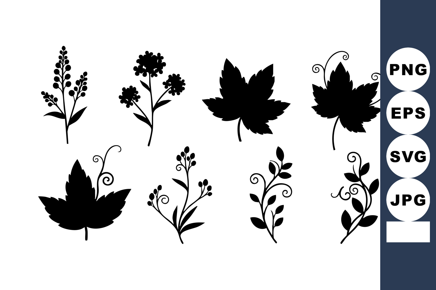 Black Silhouette Floral Leaf Vine Decorative Elements Vector example image 1