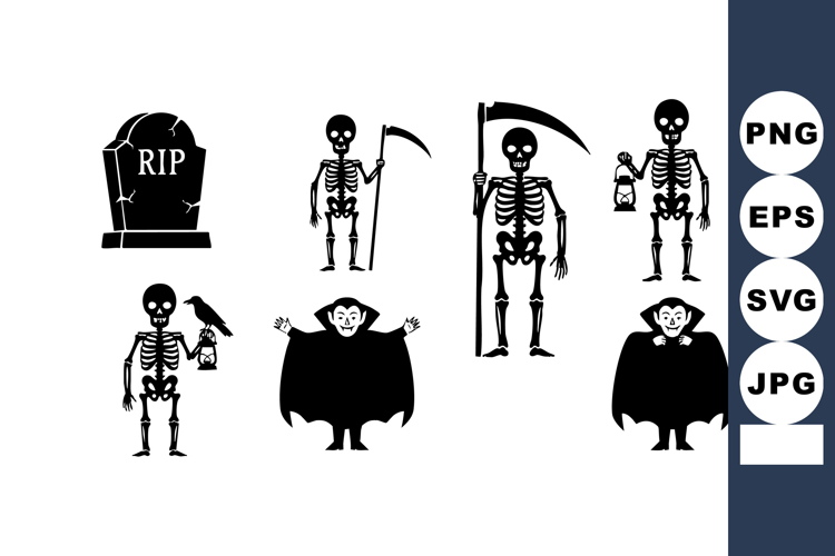 Halloween Skeleton Vampire Characters Vector Set example image 1