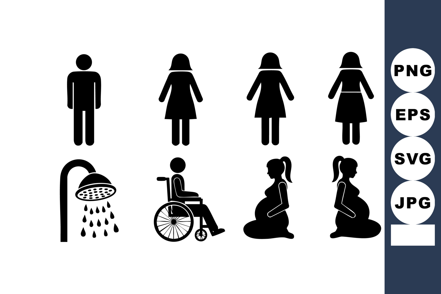 Silhouettes People Shower Wheelchair Pregnant Icons Vector example image 1