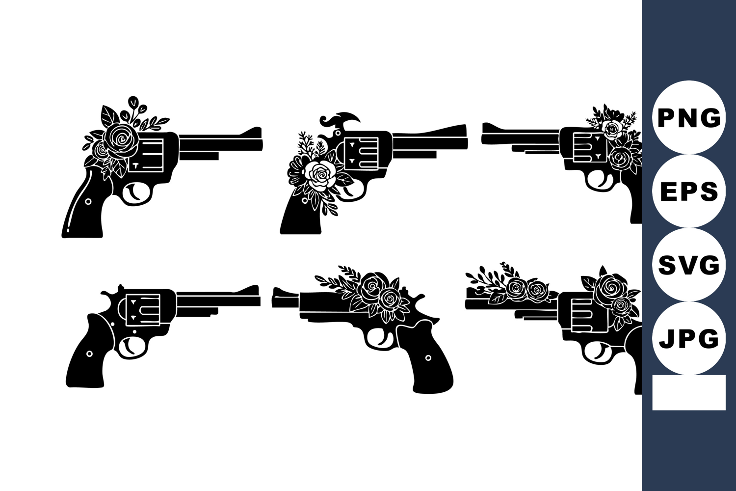 Black Silhouette Revolver Handgun Floral Design Set example image 1