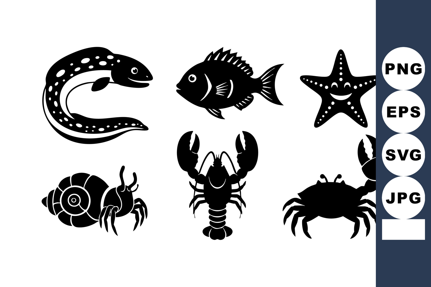 Marine Life Vector Marine Animals Silhouette Fish Lobster Crab Crab Starfish Seashell Hermit Crab Underwater Underwater Creatures Collection Ocean Wildlife Vector Aquatic Animal Silhouettes Sea Ocean Life Ocean Habitat Creatures