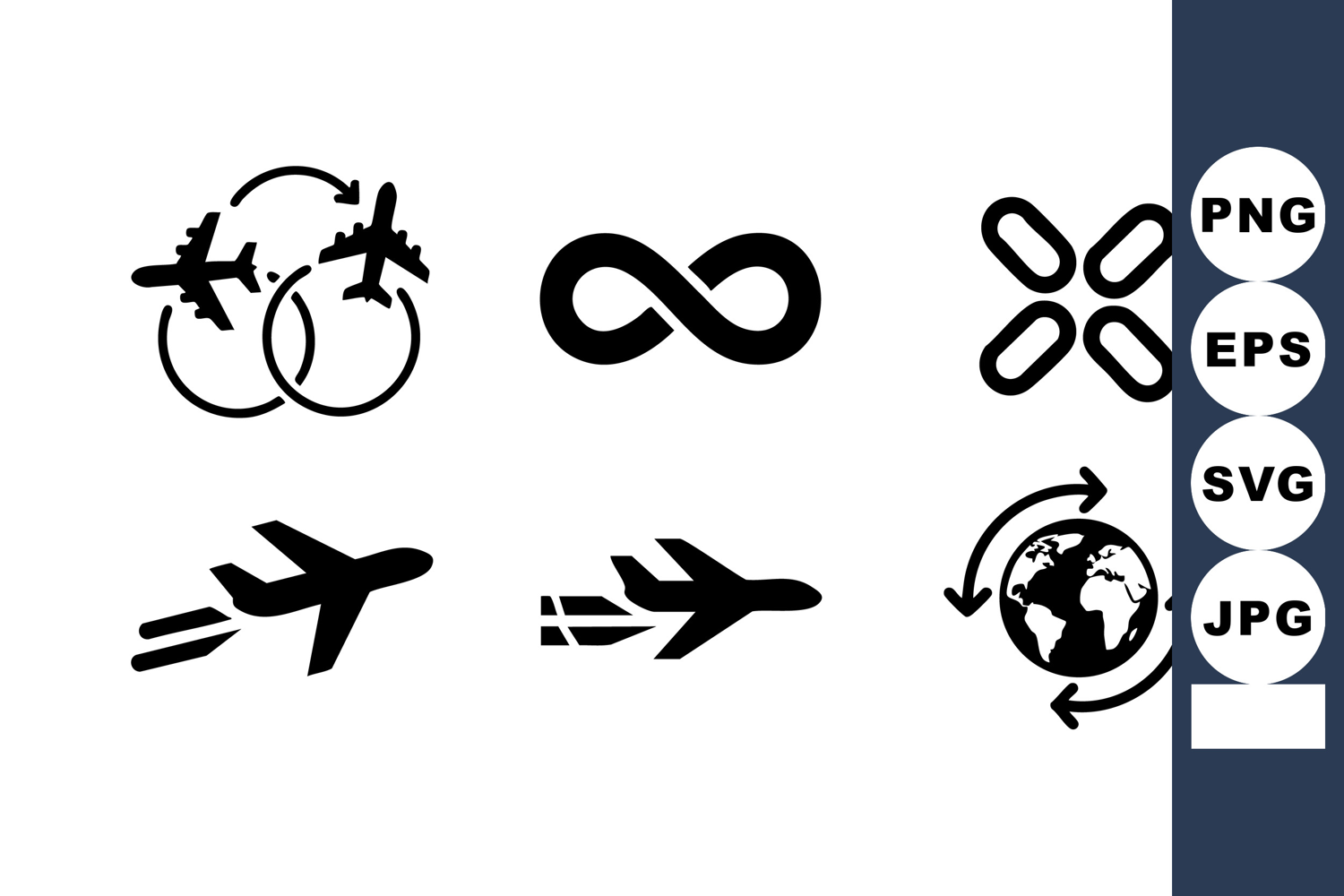 Similar Design Products to Black Airplane and Infinity Travel Icons Vector
