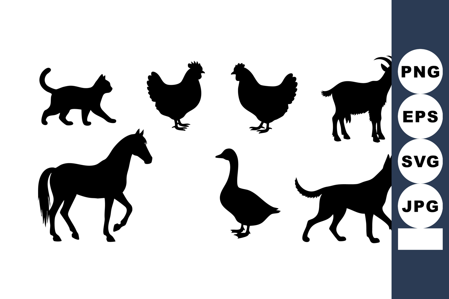 Vector Animal Illustration Farm Animal Vector Common Farm Animals Simple Animal Design Black Animal Silhouettes Cat Chicken Goat Horse Goose Dog Rustic Animal Silhouettes Domestic Farm Animals Animal Silhouettes Set