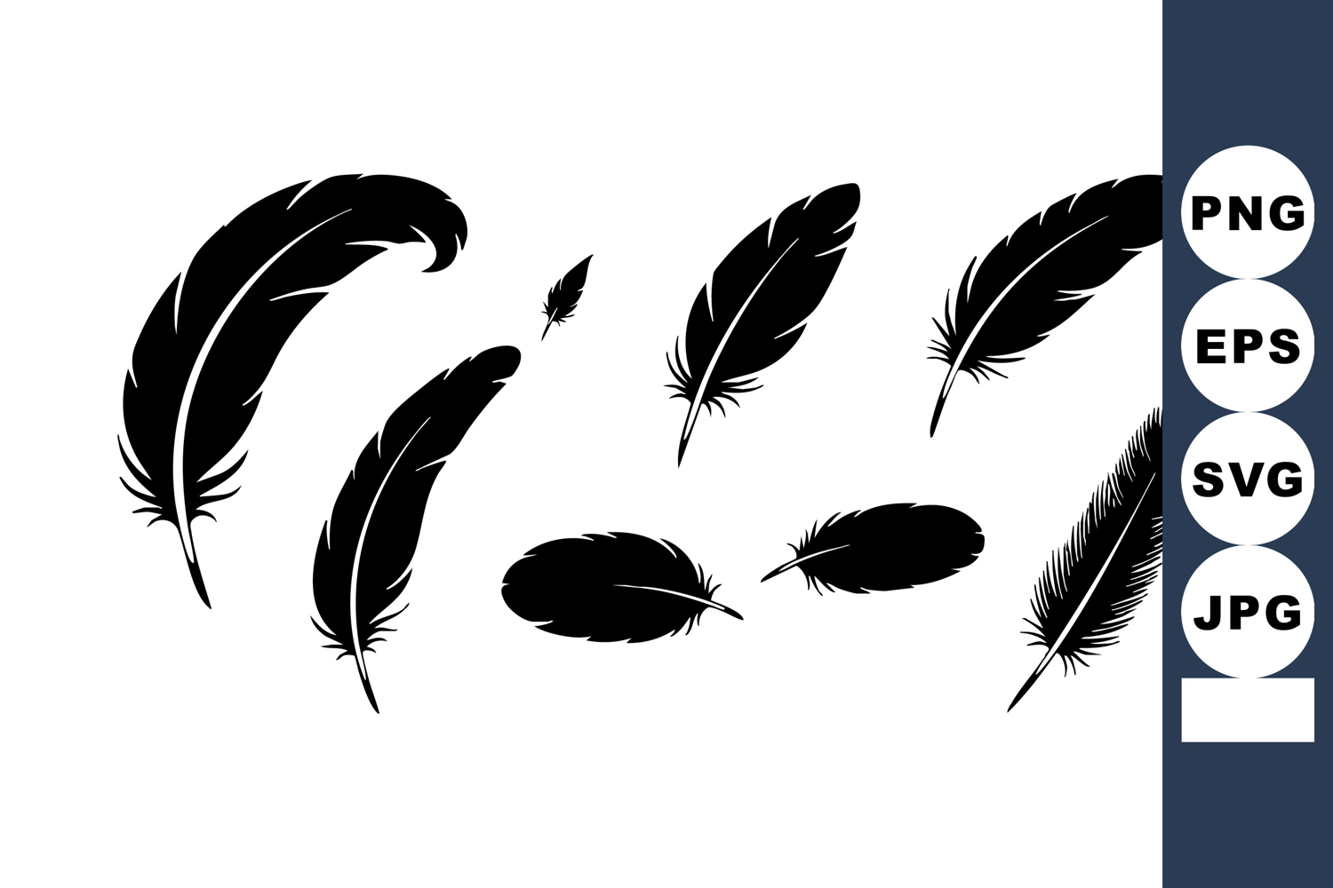 Black Feather Vector Set Isolated On White Background example image 1