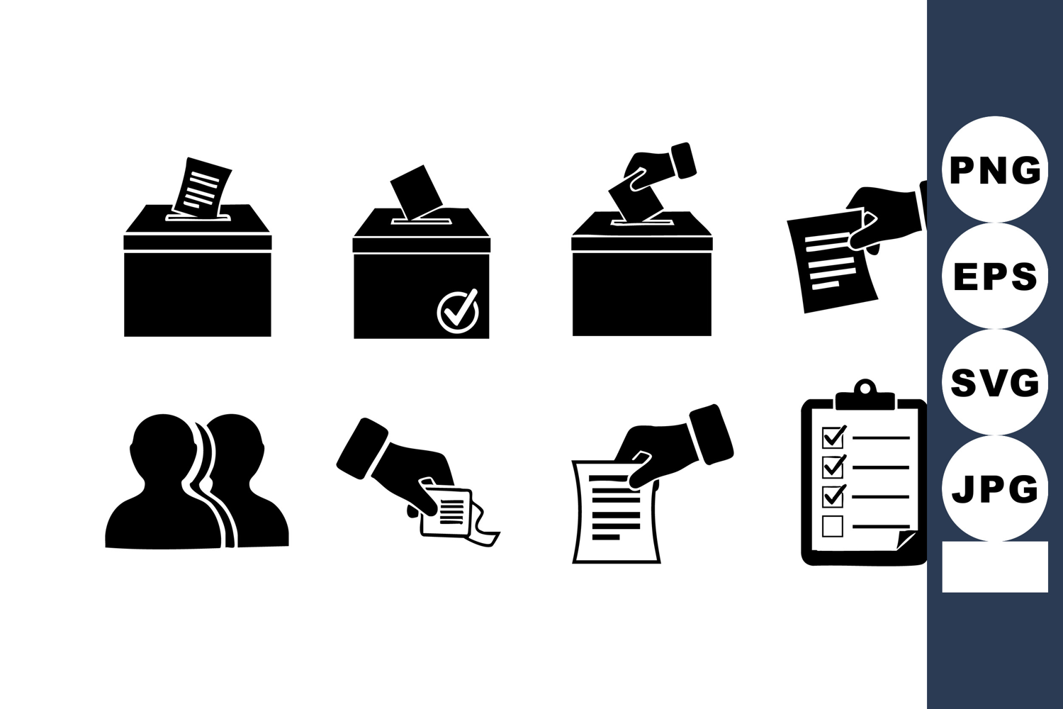 Icons Vector Illustration Vector Illustration Simple Illustration Simple Design Simple Design Black Silhouette Icons Vector Voting Ballot Box Ballot Box Checklist Checklist Hand People Hand People Silhouette People Silhouette Icons