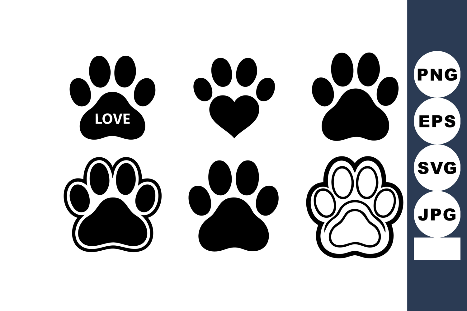 Black White Paw Prints Vector Icons Set Love Hearts example image 1