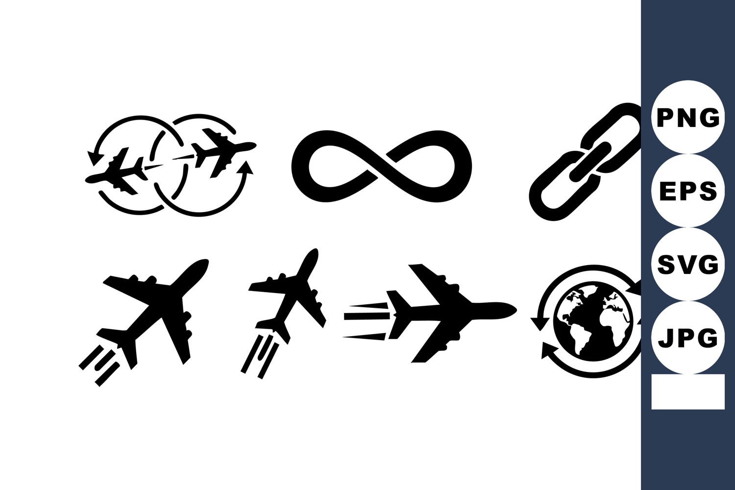 Infinity Symbol Vector Black Airplane Icons Airplane Icons Set Global Travel Connection Continuous Flight Sign Travel Connection Icon Flight Symbol Design Global Earth Icon Travel Journey Symbol Aviation Wing Icon